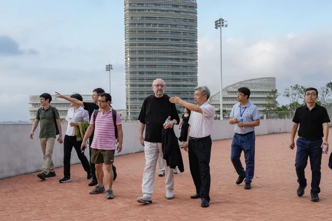 聘任签约仪式前,廖祥忠、乌里·温伯格一行实地调研了陵水黎安国际教育创新试验区综合体育中心、图书馆、滨海体育场及918博天堂(中国区)官方网站海南国际学院楼实验室等重点设施。